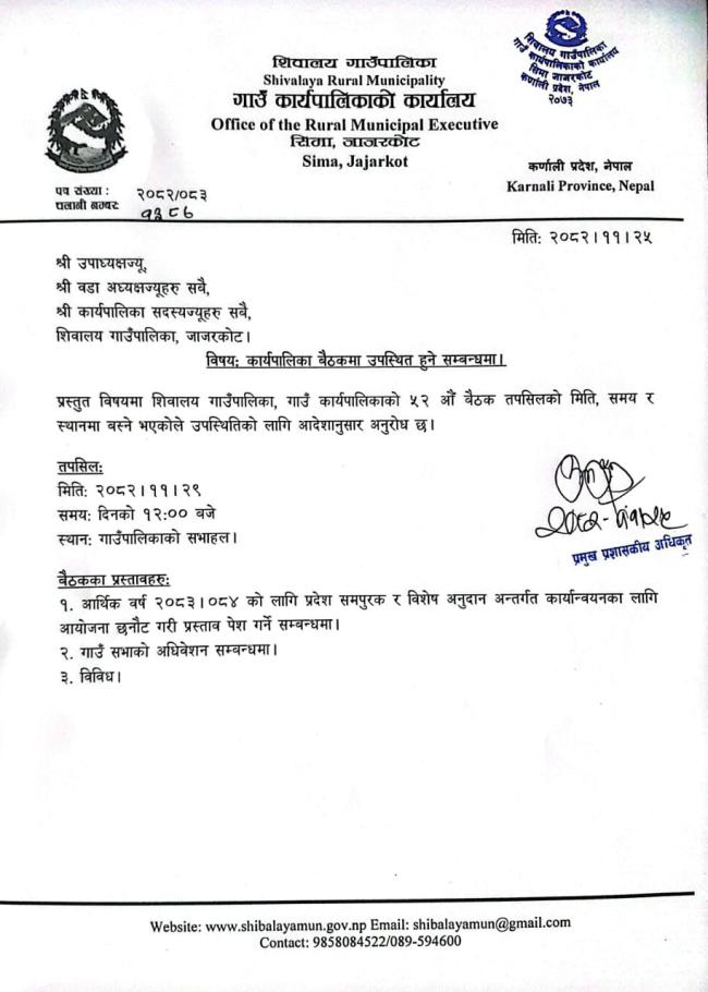 कार्यपालिका बैठकमा उपस्थित हुने सम्बन्धमा (मिति २०८२।११।२९)