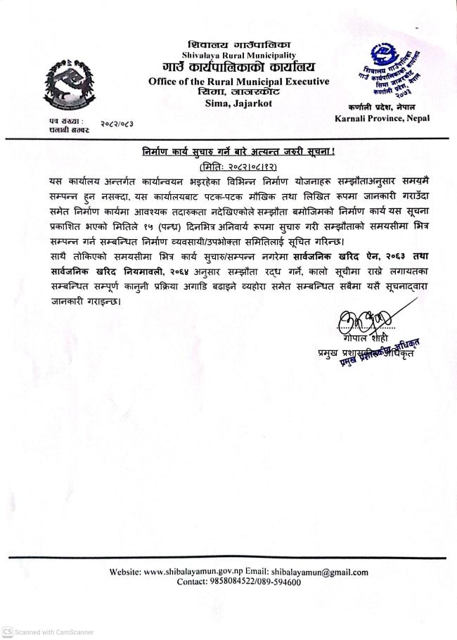 निर्माण कार्य सुचारु गर्ने सम्बन्धी अत्यन्त जरुरी सूचना।