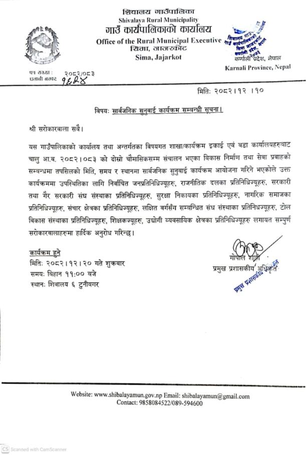 सार्वजनिक सुनुवाई कार्यक्रम सम्बन्धी सूचना l