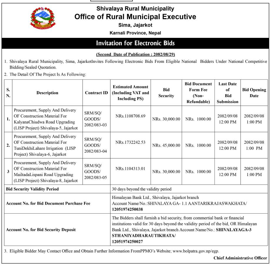 Invitation for Electronic Bids for LISP Project Shivalaya 5,6,8 Jajarkot
