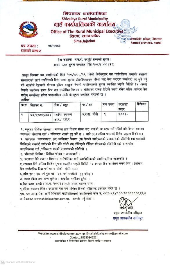 अ.न.मी. पदको पदपूर्ति सम्बन्धी सूचना प्रकाशन गरिएको सम्बन्धमा।