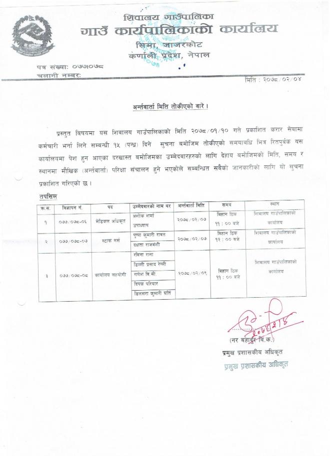 अन्तर्वार्ता मिति तोकीएको बारे।