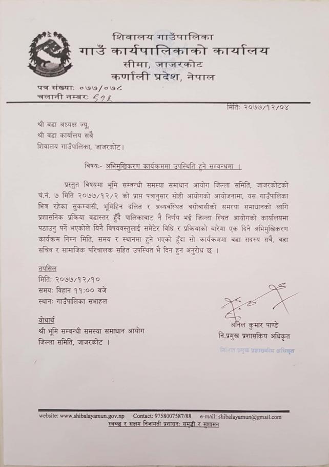 अभिमुखिकरण कार्यक्रममा उपस्थिति हुने सम्बन्धमा।