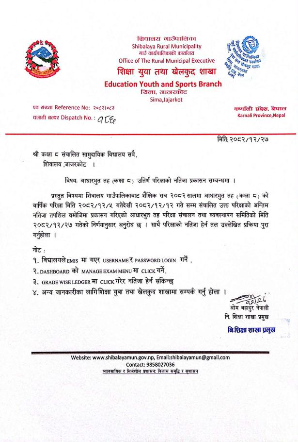 आधारभुत तह (कक्षा ८) उतिर्ण परिक्षाको नतिजा प्रकाशन सम्बन्धमा।
