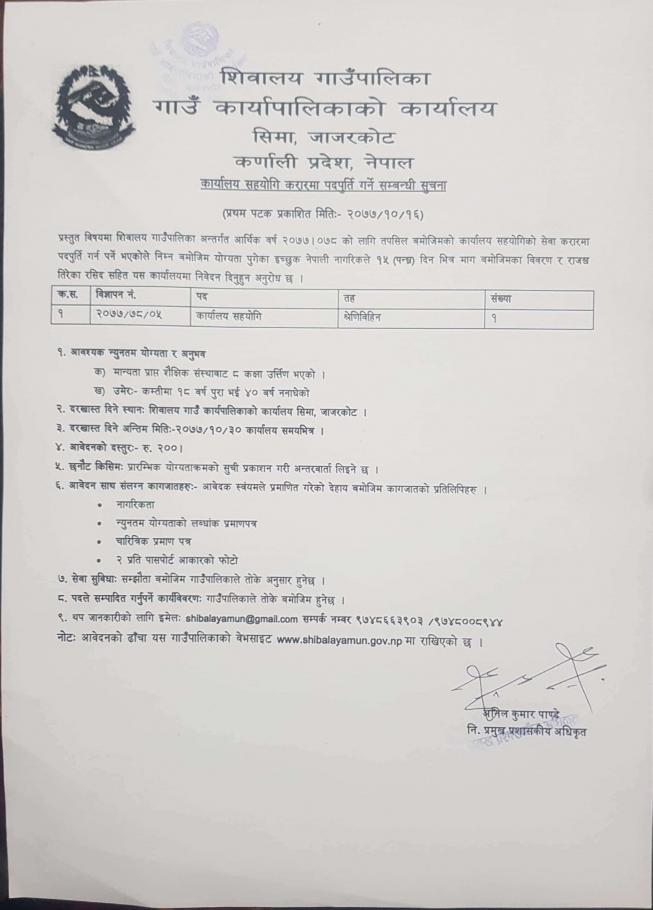 कार्यालय सहयोगि करारमा पदपुर्ती गर्ने सम्बन्धमा।