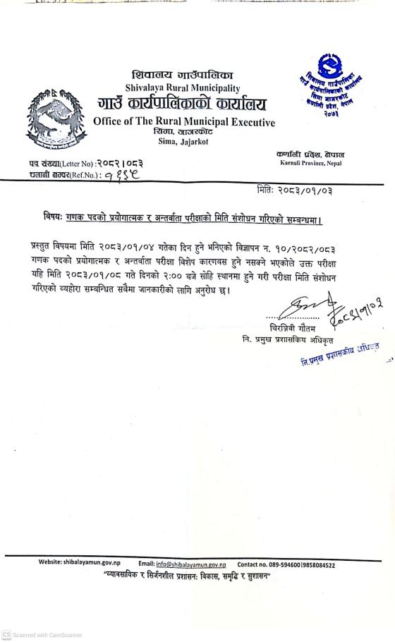 गणक पदको प्रयोगात्मक र अन्तर्वार्ता परीक्षाको मिति संशोधन गरिएको सम्बन्धमा।