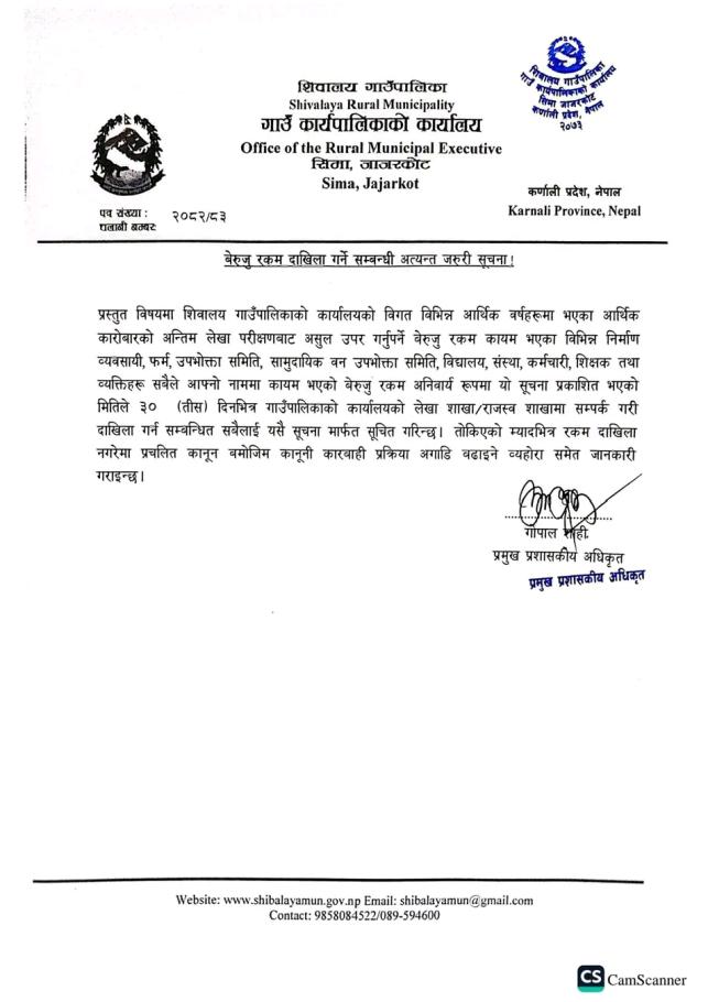 बेरुजु रकम दाखिला गर्ने सम्बन्धि अत्यन्त जरुरी सूचना।