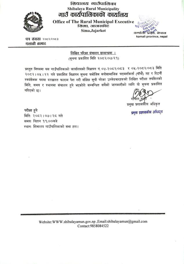 मनोसामाजिक परामर्शकर्ता र रिटर्नी स्वयंसेवकको लिखित परिक्षा संचालन सम्बन्धमा।