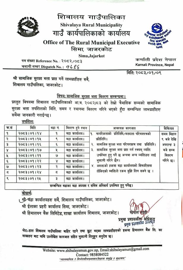 सामाजिक सुरक्षा भत्ता वितरण सम्बन्धमा।